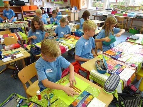 After a short assembly in the new building our pupils had five lessons in English. They were divided into five groups mixed from year 1 to 4.This was the timetable:
