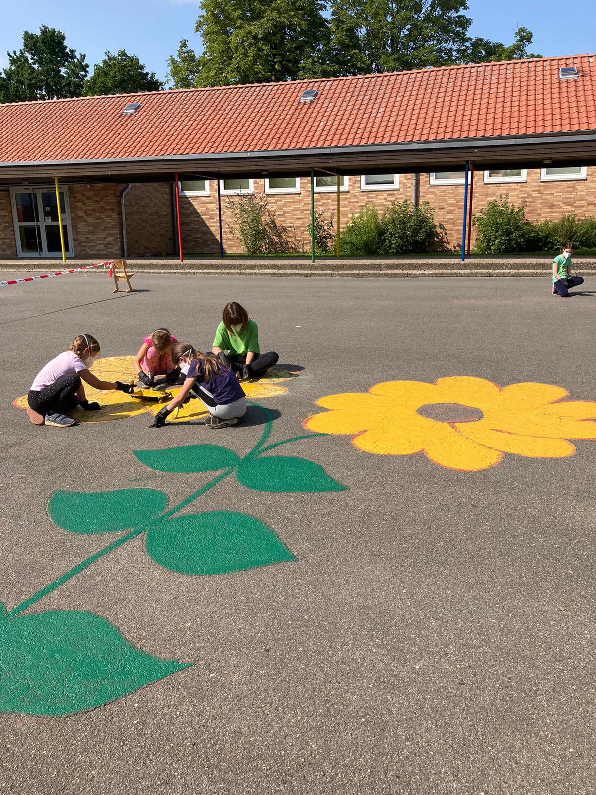 Gemeinsam mit den Kindern der Ferienbetreuung machten sich Frau Behnke-Wiechens und das Ehepaar Ruby daran, unseren Schulhof mit einigen tollen Bewegungsspielen zu bemalen. Nun steht aktiven Pausen nichts mehr im Wege. Ein herzliches Dankeschön an alle Beteiligten!!!